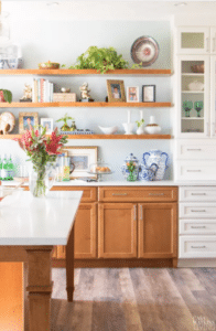 Or maybe you already have honey oak cabinets in your home that date back decades. Even though this wood style is back in vogue, you might be worried that your kitchen still feels outdated. In this instance, a few cosmetic tweaks will go a long way. “Updating hardware, lighting, and counters can make those cabinets feel intentional and current again,” Haddad says.