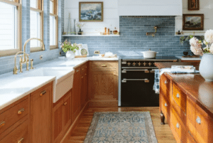 For some designers, honey oak is a welcome alternative to the white tones that have characterized kitchens in recent years. “White oak has had its run,” says Peggy Haddad, the founder of Peggy Haddad Interiors. “We’re starting to see warmer oaks make a comeback, especially where the grain shows and the tone feels sun-warmed.” The designer is drawn to using honey oak in moderation and will opt for a matte finish. The tone, she says, “adds instant warmth and vintage charm to a space.”